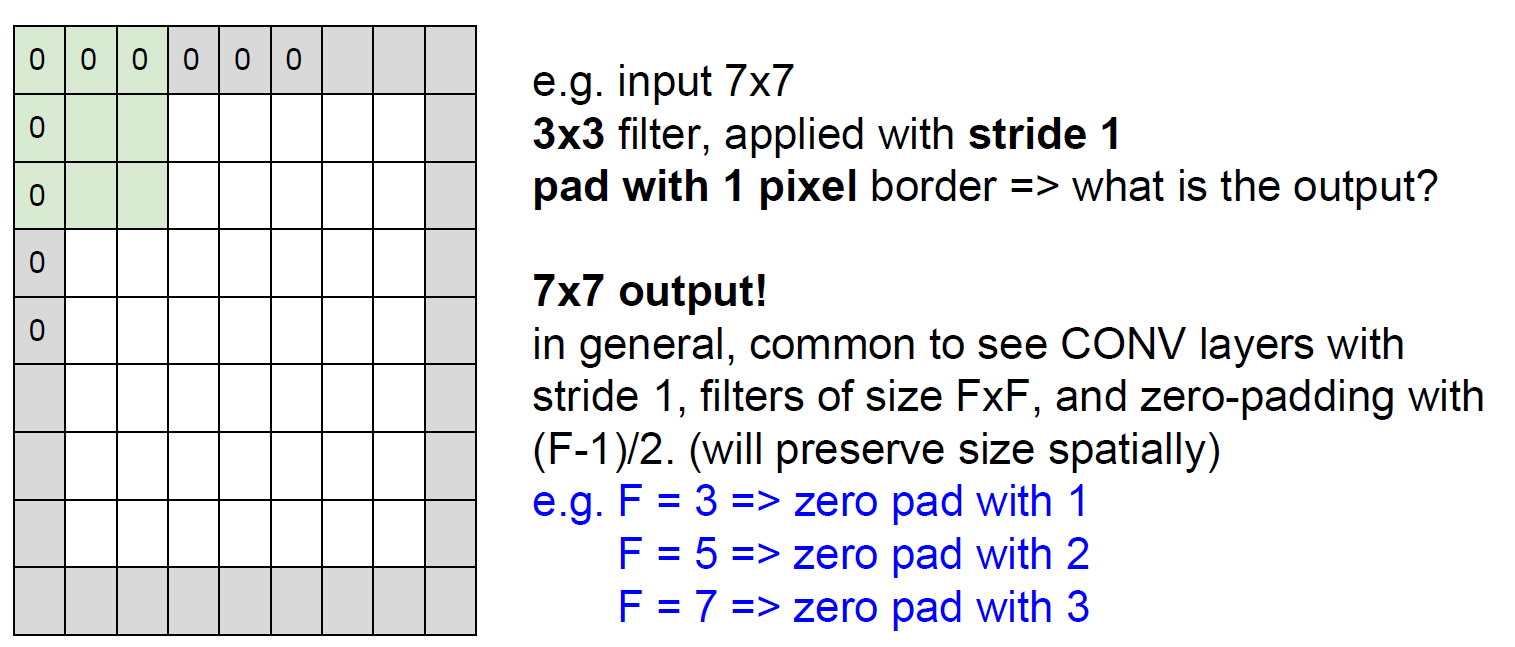 padding은 이미지 가장 바깥쪽에 0으로 구성된 픽셀들을 추가하는 것인데, 이 과정을 거치면 convolution 이후 이미지의 크기가 감소하는 것을 막을 수 있다. 이미지 크기가 너무 작아지면 정보의 손실이 커서 제대로 된 학습이 어려워진다.