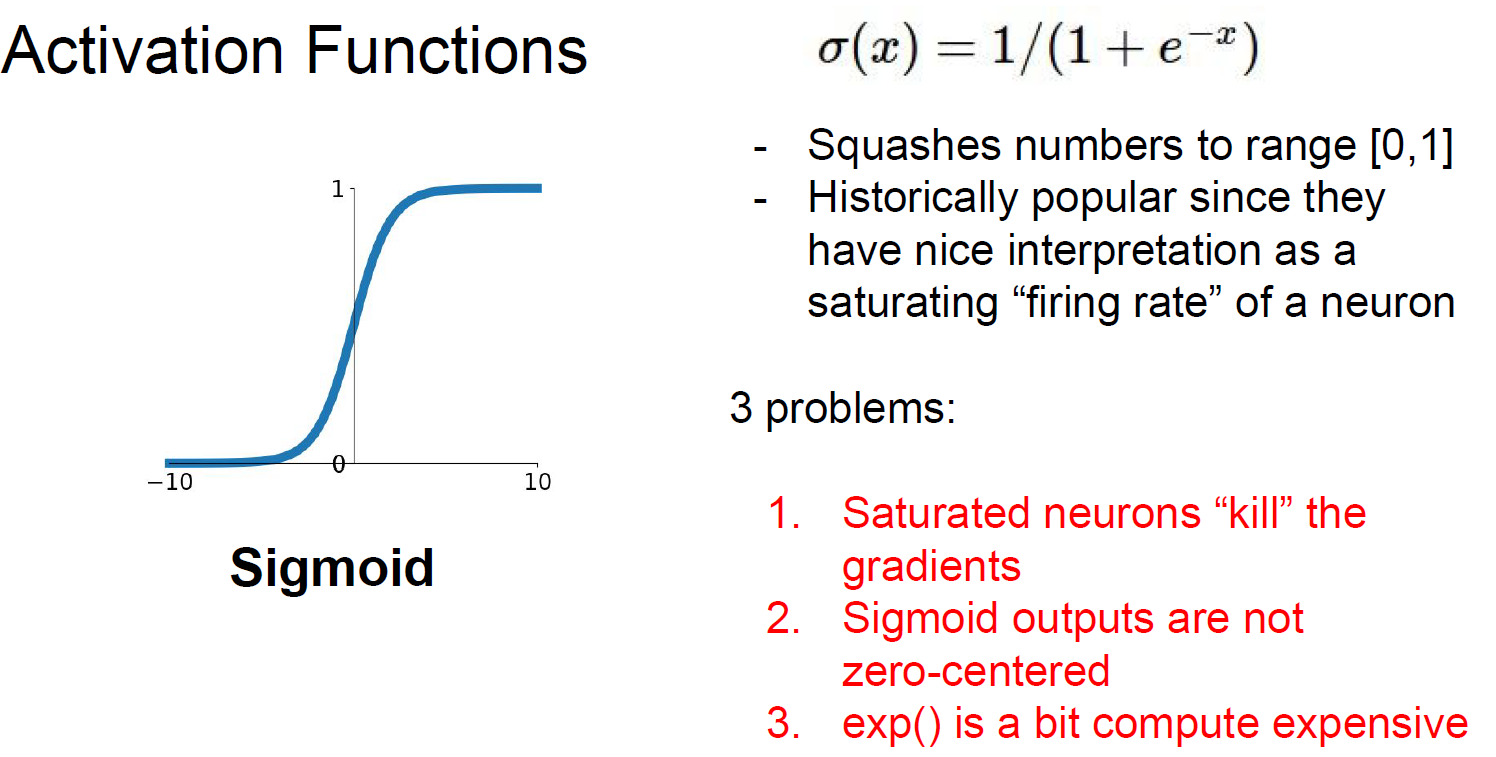 크게 3가지 문제가 있다. 우선 neuron이 saturate(포화) 된다는 문제가 있다.