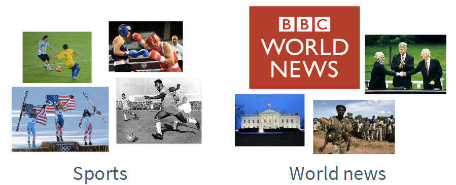 예를 들어 뉴스 기사를 사회, 경제, 스포츠 등으로 분류하는 문제를 예를 들 수 있다. 이러한 학습은 정답이 정해져 있지 않기 때문에 unsupervised learning이라 불리며 이렇게 분류하는 방식을 clustering이라 한다.