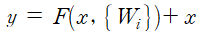 이다. 여기서 sigma는 ReLU이다. 문제는 F와 x의 dimension이 다를수도 있다는 점인데(input, output channel 개수가 변경 되어) 이 경우 linear projection을 통해 해결한다. 수식으로 표현하면 아래와 같다.