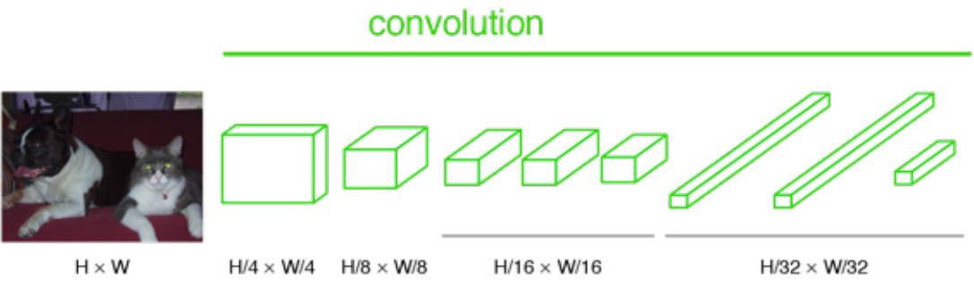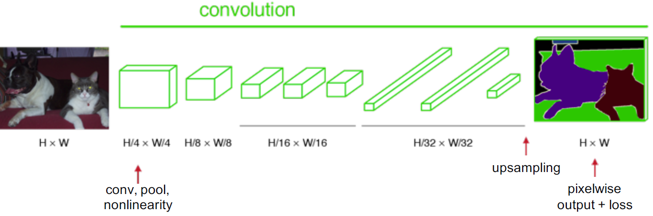 classification에서 통상적으로 입력 이미지는 크기가 축소되어 convolution layer와 fully connected (FC) layer를 거치고, 다음과 같이 입력 이미지에 대한 예측 라벨 하나를 출력한다.