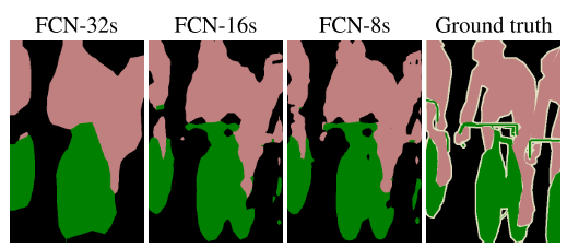 Refining fully convolutional nets by fusing information from layers with different strides improves segmentation detail. The first three images show the output from our 32, 16, and 8 pixel stride nets
