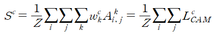 우선 CAM을 구하는 수식을 이 논문이 표현하는 방식으로 다시 나타내면 아래와 같다.