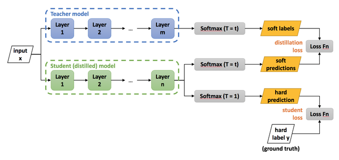 Knowledge distillation은 NIPS 2014에 제출된 "Distilling the Knowledge in a Neural Network"라는 논문에서 제시된 개념이다. 간단하게 큰 모델(Teacher Network)로부터 증류한 지식을 작은 모델(Student Network)로 transfer 하는 일련의 과정이다. Knowledge distillation은 작은 네트워크가 큰 네트워크와 비슷한 성능을 낼 수 있도록 하는 것이 목적이다.