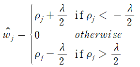 지금까지 계산한 것은 RSS만 고려하였으므로 lasso가 아닌 mean squares를 위한 coordinate descent이다. lasso에 적용된 coordinate descent는 아래와 같다.