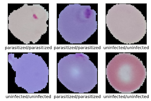 import numpy as np import cv2 import os, glob parasitized_dir = glob.glob('./Parasitized/*.png') uninfected_dir = glob.glob('./Uninfected/*.png') print(len(parasitized_dir), len(uninfected_dir))13779 13779 from tqdm import tqdm width = 128 height = 128 image = [] label = [] task1 = tqdm(parasitized_dir) task2 = tqdm(uninfected_dir) for img_path in task1: img = cv2.imread(img_path, 1) img = cv2.resize(img, (width, height), interpolation=cv2.INTER_CUBIC) img = np.transpose(img, (2, 0, 1)) / 255 image.append(img) label.append(0) for img_path in task2: img = cv2.imread(img_path, 1) img = cv2.resize(img, (width, height), interpolation=cv2.INTER_CUBIC) img = np.transpose(img, (2, 0, 1)) / 255 image.append(img) label.append(1) image = np.array(image) label = np.array(label) print(image.shape, label.shape)(27558, 3, 128, 128) (27558,) 데이터를 torch tensor로 변환하고 몇가지 데이터를 시각화 해봤다.