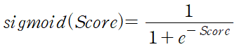 로 표현된다. 문제는 이 확률이 score가 음의 무한대라면 0으로(긍정일 확률이 0), 양의 무한대라면 1로(긍정일 확률이 1) 0이라면 0.5가 돼야 할 것이다. 이 관계를 적절히 만족하는 함수가 바로 sigmoid 함수이다. sigmoid 함수는 다음과 같이 정의된다.