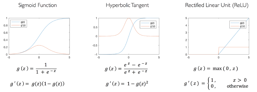그렇다면 activation function은 왜 사용하는 것일까? 실제로 사용하는 activation function들은 아래와 같이 모두 nonlinear이다.