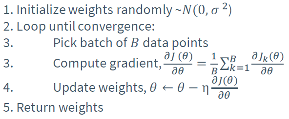 학습의 효율을 높이는 방법으로는 mini-batch를 사용하는 방법도 존재한다. 아래는 일반적인 GD, SGD mini-batch SGD의 알고리즘 차이를 보여준다.