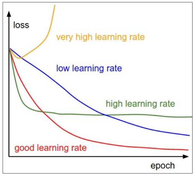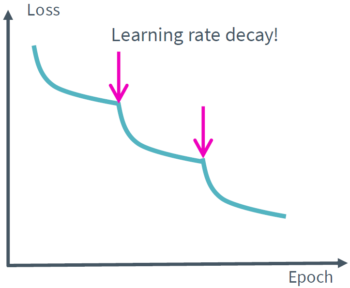 또 다른 방법은 학습이 진행됨에 따라 lenrning rate를 감소시키는 것이다. 각 learning rate에 따른 loss의 변화는 아래와 같다.