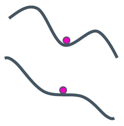 learning rate를 결정하는 것은 매우 어렵다. learning rate가 너무 작다면 학습 속도가 느리며 local minima에 갇힐 수 있다. 반대로 learning rate가 너무 크다면 학습이 불안정해지고 발산할 수 있다. 실제로 매 학습마다 적절한 learning rate를 새로 결정하는 것은 매우 어렵기 때문에 adaptive learning rate라는 방식을 사용한다. 대표적으로 momentum, adagrad, adadelte, RMSProp, adam 등이 존재한다. 이러한 알고리즘은 아래 그림과 같이 SGD 등이 local minima나 saddle point에 같이는 현상을 막는다.