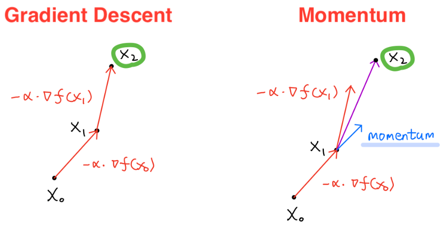 예를 들어 momentum은 SGD와 비교했을 때 momentum과 관련된 항이 추가된다.