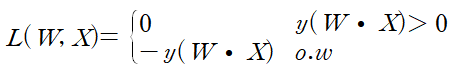 또한 gradient decent를 방식을 이용하기 위해 loss function이 필요한데, perceptron의 loss function은 아래와 같이 hinge loss(생긴 모양새 때문에 이름 붙여졌다.)로 표현된다.