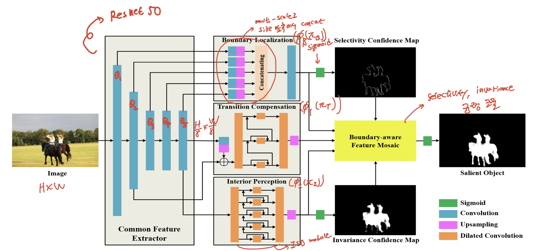 - selectivity- invariance 딜레마 (논문 표현 : interior의 feature들은 전체적으로 salient object가 튀어나올 수 있도록 강한 외관의 변화에 따라 변하지 않아야 하며, boundary의 feature들은 눈에 띄는 물체와 배경을 구별할 수 있도록 약간의 외관의 변화로 선택되어야 한다.)