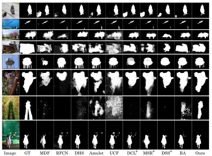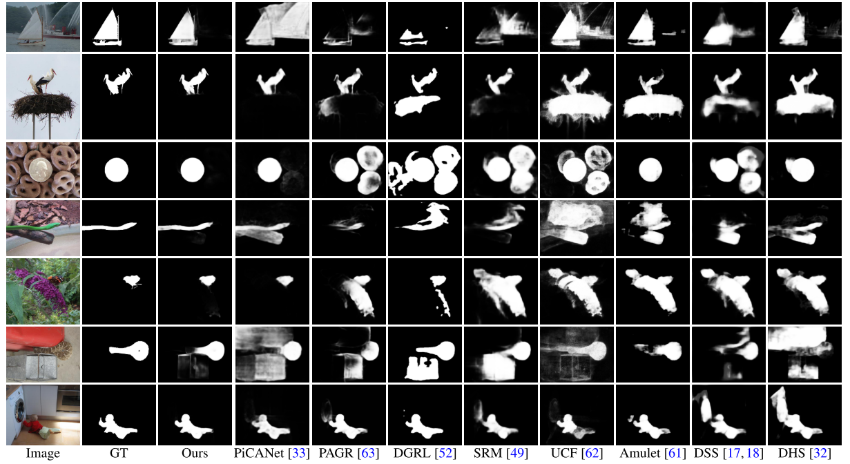 - 데이터셋은 MSRA-B, ECSSD, PASCAL-S, DUT-OMRON, HKU-IS, iCoseg 사용