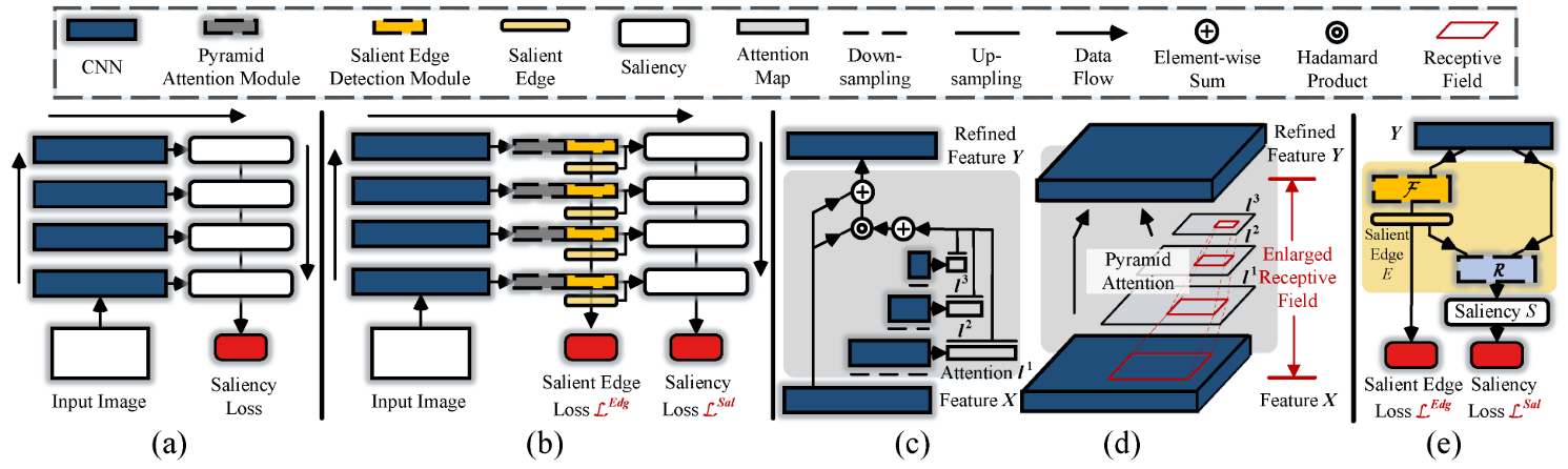 - salient object영역에 더 attention을 주기 위해 essential pyramid attention structure구조를 제안하여 multi-scale saliency information을 잘 뽑게 함