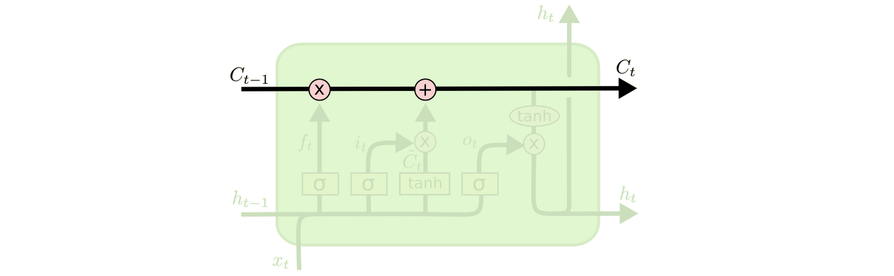 LSTM의 핵심은 cell state이며 그림의 상단을 가로지르는 수평선이다.