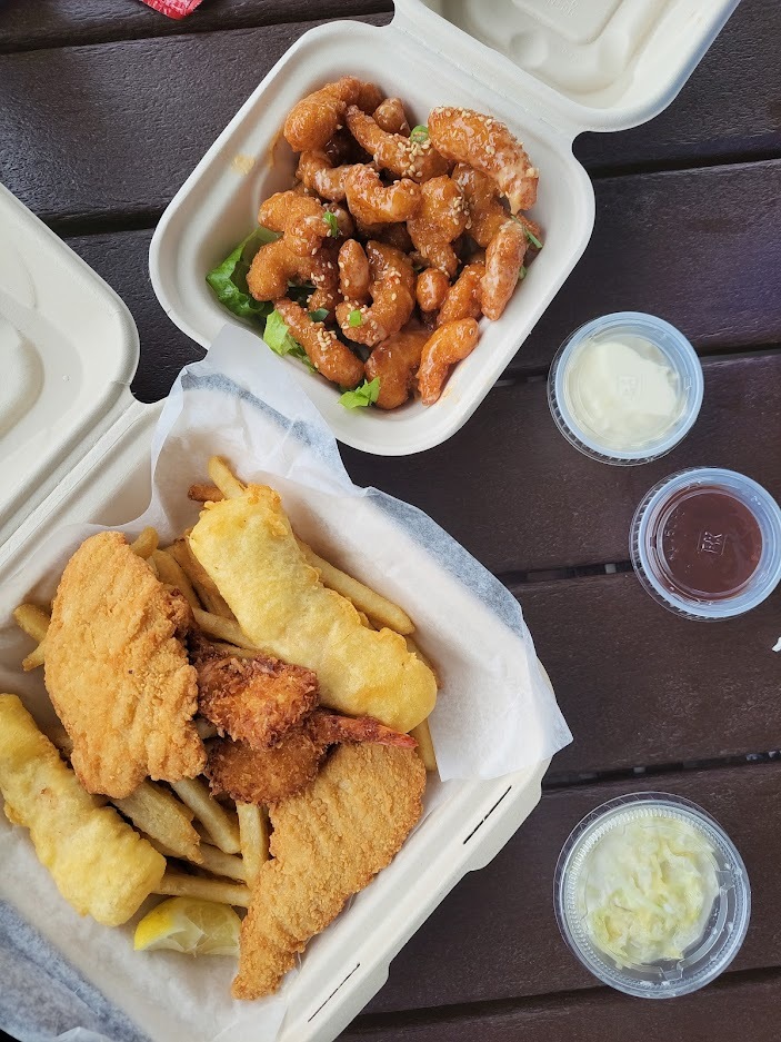 우버 기사님이 추천해준 피쉬엔 칩스 가게, 테이크아웃 전문점인데 저 호수 뷰를 보면서 먹기 좋다. 소스가 다코야키 느낌이 나는 특이한 소스였다. 킹스 샵스에 아주 유명한 Island Vintage Coffee라는 카페가 있다.