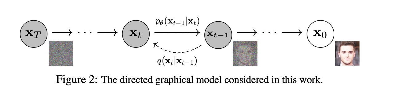 먼저 DDPM은 이미지에 작은 가우시안 노이즈를 더하는 과정의 역과정 (즉 노이즈를 제거하는 과정) 역시 가우시안 분포로 모델링이 가능하다는 가정으로 시작한다. 즉 다시 말하면 normal distribution에 대한 노이즈가 주어졌을 때 이를 어떻게 복원할 것인가에 대한 문제를 모델이 해결하는 것이다.