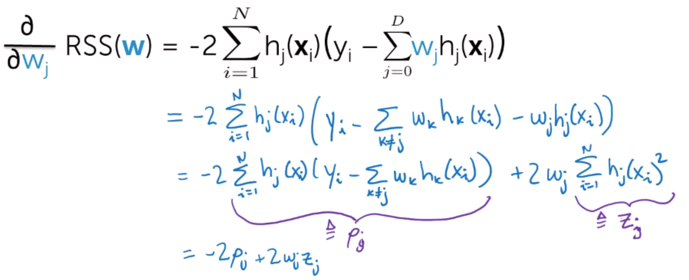 feature가 normalized 되지 않았음에 주목하자. cordinate decent를 설명할 때 normalized 되지 않은 feature를 고려하는 것이 더 일반적이다. 우선 네모 친 부분의 수식을 먼저 고려하자.