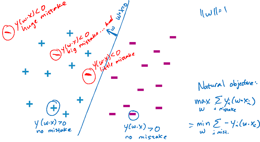 따라서 perceptron이 최적의 분류를 하는 또 다른 기준은 이 hinge loss의 평균을 최소화하는 것이다.