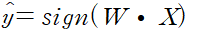 Classification의 또 다른 알고리즘으로 perceptron 알고리즘이 있다. 예를 들어 y=-1과 y=+1의 2개의 class를 구분하는 linear classification을 생각해보자. 그러면 perceptron 알고리즘의 prediction은 다음과 같이 주어진다.