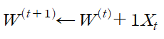 를 만족한다 따라서 weight에 X_t를 더해 가중치를 업데이트해야 하므로
