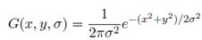 G는 Gaussian Blur 연산자이고 I는 이미지이다. x, y는 위치 좌표이고 σ는 "scale" parameter이다. Blur 되는 값이 클수록 Blur가 많이 된다.